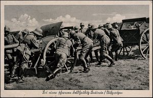 1926 | 12 € | DEUTSCHE WEHRMACHT 1933 - 31.8.1939 : DEUTSCHES REICH 1940 (ca.) s/w.-Foto-Ak.: schw. Artillerie, 15cm-Geschütz (NS-Kriegsflagge u. Hakenkreuzadler) ungebr. (Nr.5934 Verlag Joh. Thordsen, Hambg.) | ![]() | |