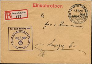 1888 | 18 € | DEUTSCHE WEHRMACHT 1933 - 31.8.1939 : DEUTSCH KRONE/ Stadt zw.Seen u.Wäldern 1939 (5.8.) HWSt + viol. HdN: FdAR/Heeresstandortverwaltung Dt. Krone + RZ: Deutsch Krone klar gest., markenloser Wehrmachts-R-Bf. n. Leipzig (Bo.1 , Erstjahr!) | ![]() | |