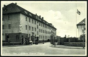1886 | 14 € | DEUTSCHE WEHRMACHT 1933 - 31.8.1939 : CROSSEN (ODER)/ e 1939 (3.9.) 2K-Steg auf s/w.-Foto-Ak.: Artillerie-Kaserne Eingang mit Hakenkreuz-Flagge , Bedarf (Mi.516) | ![]() ![]() | |