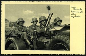 1921 | 18 € | DEUTSCHE WEHRMACHT 1933 - 31.8.1939 : DEUTSCHES REICH 1935/41 (ca.) s/w.-Foto-Ak.: Befehlsweitergabe mittels Signalstab = Einheits-Kübelwagen bzw. LKW mit Besatzung (Fotograf A. Gross bzw. Heinz Schröter) ungebr. bzw. als Feldpost-Kt. gebr., Einzelausruf möglich: je 10.- EUR | ![]() ![]() ![]() | |