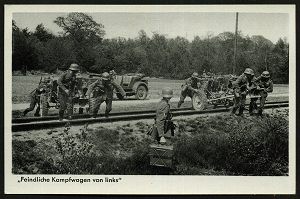1922 | 10 € | DEUTSCHE WEHRMACHT 1933 - 31.8.1939 : DEUTSCHES REICH 1935 (ca.) s/w.-Foto-Ak.: "Feindlicher Kampfwagen von links", 2 Einheits-PKW + 2x Pak 3,7 cm (Wehrmacht-Bildserie 845/101, Fotograf H. Schröter) ungebr. (Karte Nr.7094) | ![]() ![]() | |
