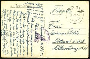 1889 | 18 € | DEUTSCHE WEHRMACHT 1933 - 31.8.1939 : Dresden 1943 2 verschiedene s/w.-Foto-Ak.: Kaserne des ehem. Kaiser-Grenadier-Regiments No. 101 , je Bedarf (1x Frankatur abgerissen) 2 Belege, (Einzelausruf möglich: je 10.- EUR) | ![]() ![]() | |
