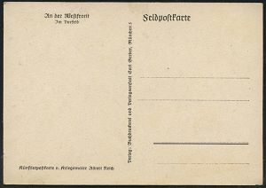 1916 | 15 € | DEUTSCHE WEHRMACHT 1933 - 31.8.1939 : DEUTSCHES REICH 1940 (ca.) s/w.-Künstler-Ak.: "An der Westfront" = Sitzkrieg-Periode 1940 (sign. Albert Reich) ungebr. (Gerber-Verlag, München) | ![]() ![]() | |