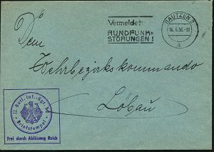 1880 | 15 € | DEUTSCHE WEHRMACHT 1933 - 31.8.1939 : BAUTZEN 2/ a/ Vermeidet/ RUNDFUNK=/ STÖRUNGEN! 1936 (16.6.) MWSt + viol. Ra.: FdAR/II. Batl. Inf.-Rgt. 52 (noch Weimarer Adler!) klar gest. Wehrmachts-Dienstbf. (Bo.S 126 A) | ![]() | |