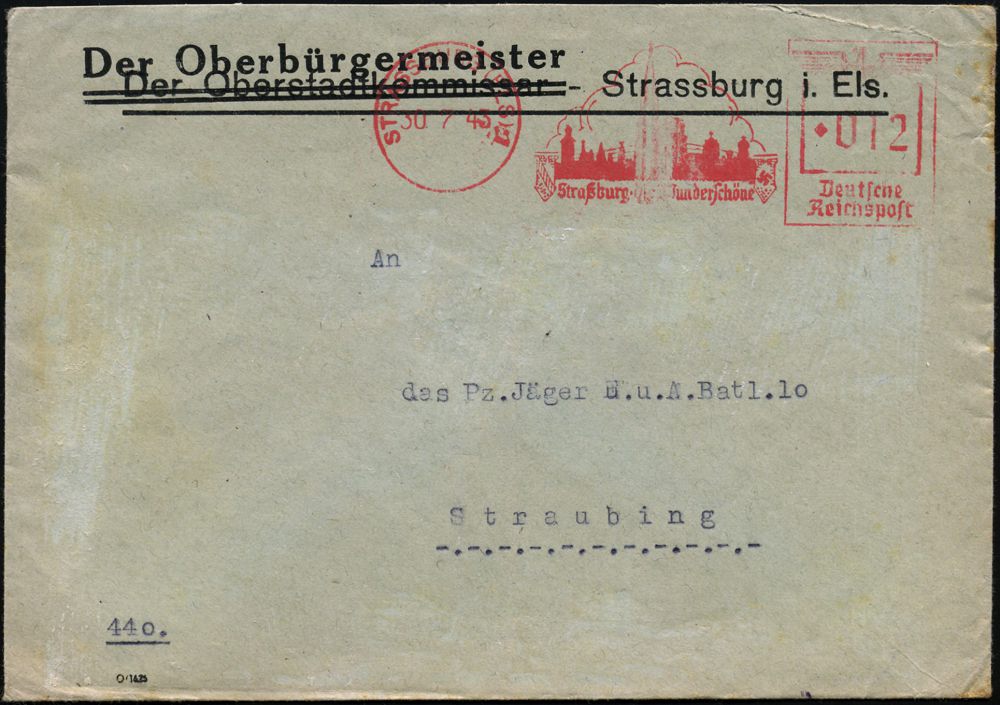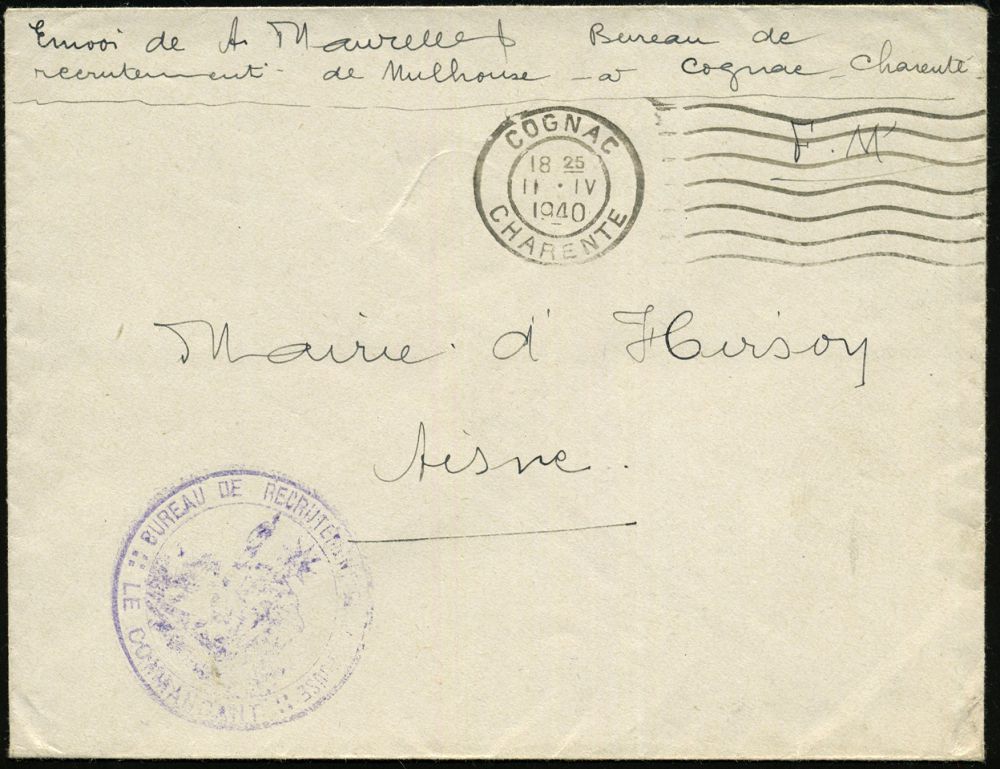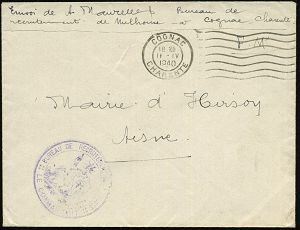 2543 | 12 € | II. WELTKRIEG (1939 - 1945) : FRANKREICH 1940 (11.4.) MaWellenSt.: COGNAC/ CHARENTE + viol. Dienst-2K-HdN: BUREAU DE RECRUITEMENT.. (Rekrutierungsbüro Mulhouse) "Sitzkrieg"-Feldpost-Dienstbf.! n. Hasoy/Aisne | ![]() | |