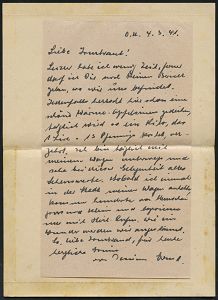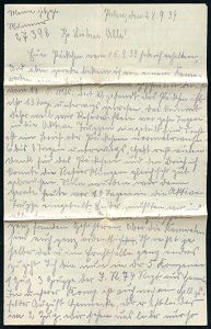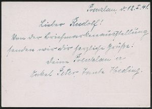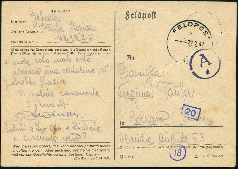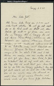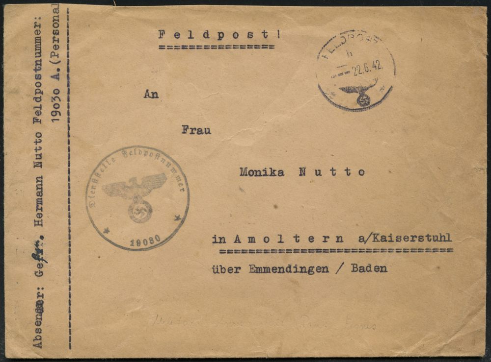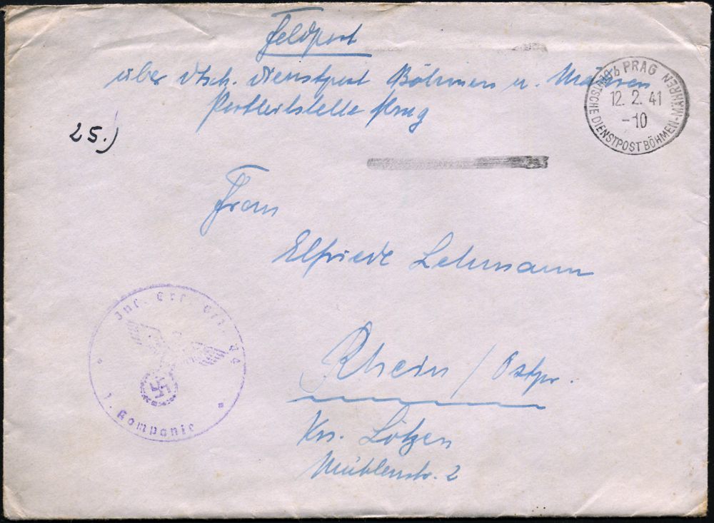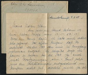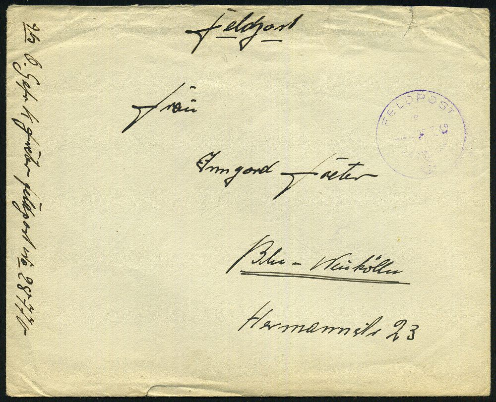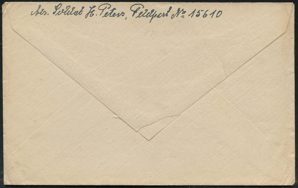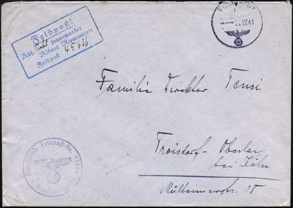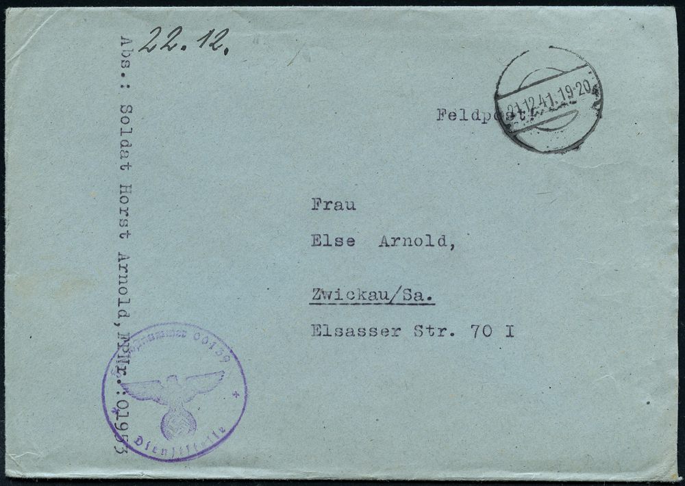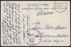 2148 | 16 € | II. WELTKRIEG (1939 - 1945) : DANZIG 5/ l 1941 (25.10.) 2K-Steg + viol. 1K-HdN: Frontleitstelle Danzig + hs. Abs. Fp.-Nr.: 15 231 A = Inf. Rgt. 37, klar gest. Feldpost-Bf. + Inhalt (oben kl. Kerbe) n. Lingen/Ems, siehe auch Sektion: DANZIG | ![]() | |