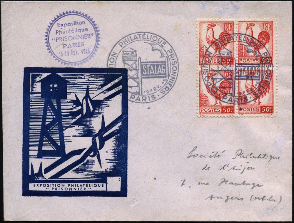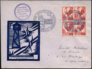 2547 | 18 € | II. WELTKRIEG (1939 - 1945) : FRANKREICH 1946 (Nov.) 50 C. "Gallischer Hahn" (Befreiungs-Komité Algier), reine MeF: 4er-Block + SSt: PARIS/STALAG/ EXPOS. PHILAT. PRISONNIERS (Wachturm, Stacheldraht) + viol.HdN: Exposition.."PRISONNIER"/ PARIS, motivgl. Sonderumschlag (Mi.12 MeF) | ![]() | |
