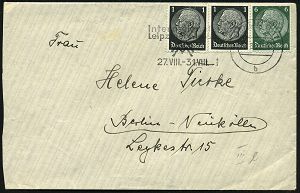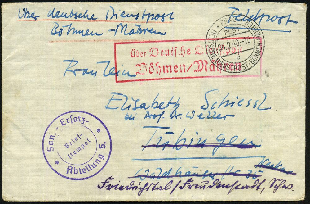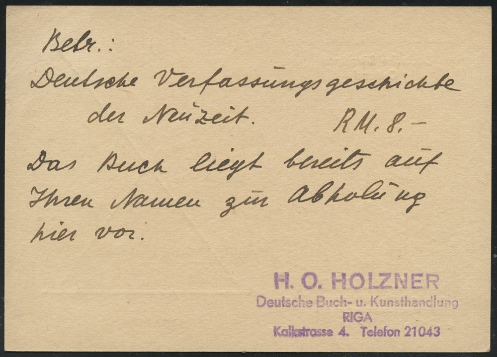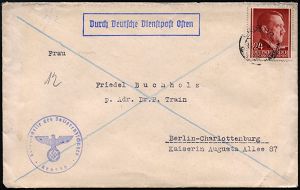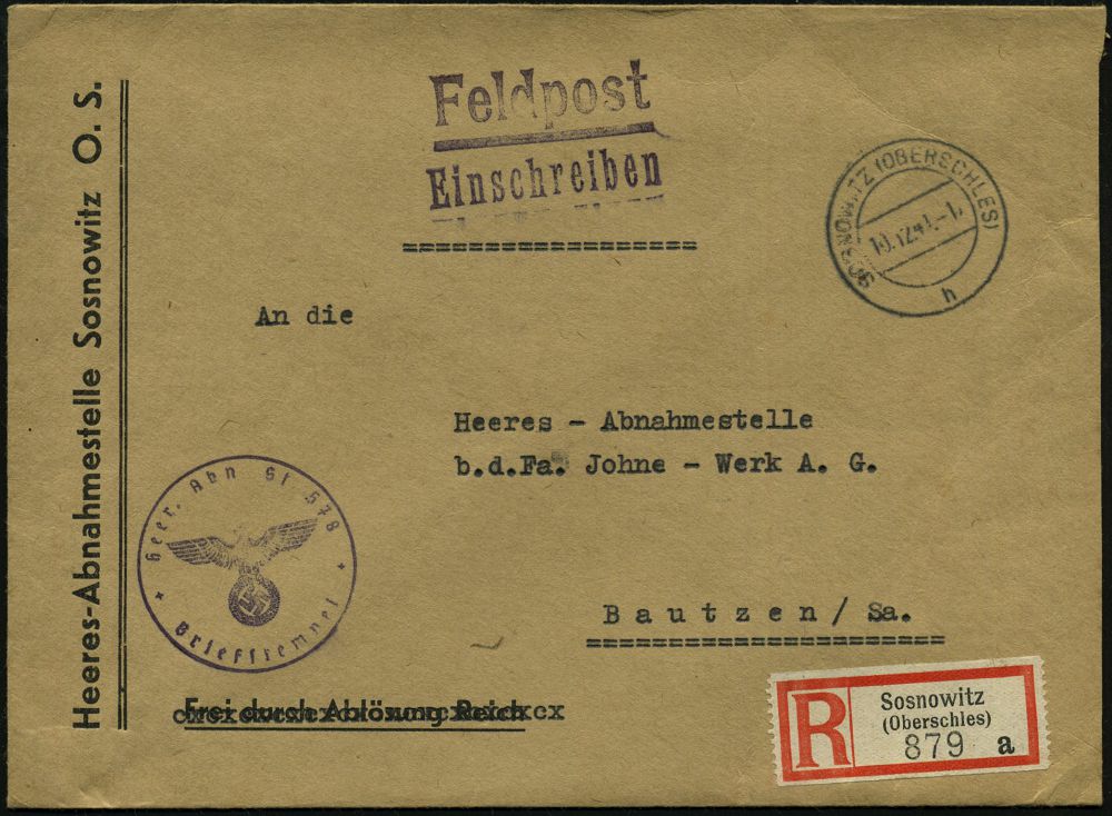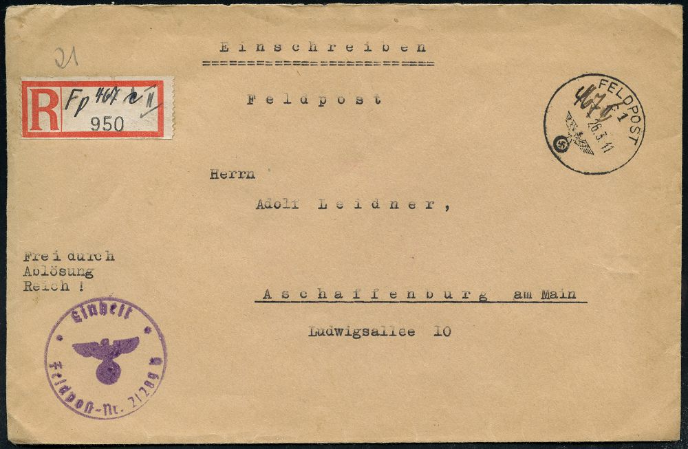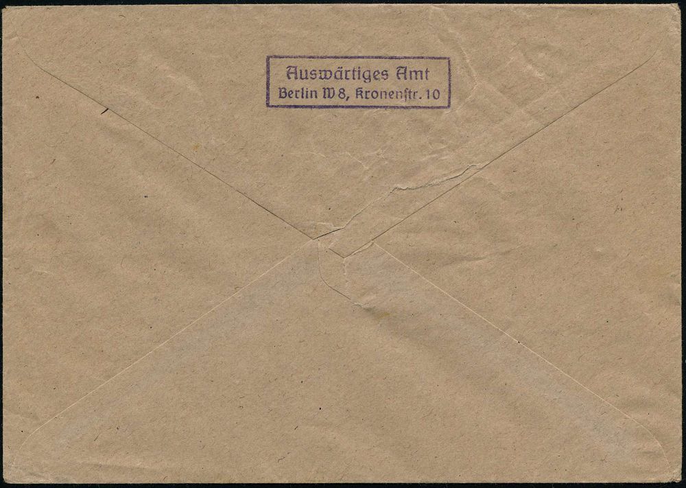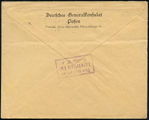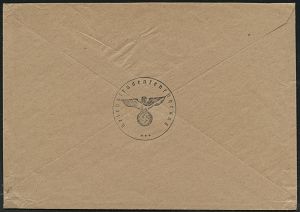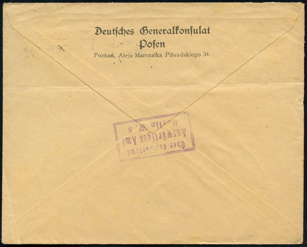 2089 | 35 € | II. WELTKRIEG (1939 - 1945) : BERLIN NW 7/ mn/ Woche des/ Deutschen Buches.. 1936 (28.10.) MaWSt + viol. Dienst-1K-HdN: Deutsches Generalkonsulat Posen + 1L: Frei durch Ablösung Reich, rs. viol. Ra3: Über das Postamt/ Auswärtiges Amt/ Berlin W 8 = PSt. II, nachgesandter Diplomaten-Kurier-Dienst- Bf. via Außenministerium, Auflieferung Berlin, rs. Abs.-Vordruck: Deutsches Generalkonsulat Posen, Poznan.., Posen war von polnischen Aufständigen 1919 okkupiert worden (vergl. Los Nr.944) nach dem Polen-Feldzug wurde Posen ins Deutsche Reich annektiert (Bo.S 233 A, nur 2 Wochen in nur 4 Orten verwendet) | ![]() ![]() | |
