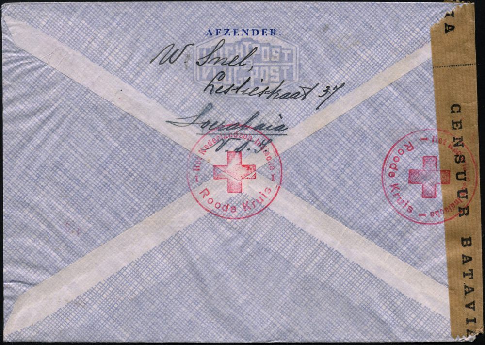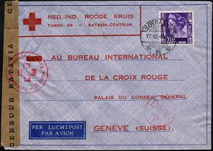 2562 | 20 € | II. WELTKRIEG (1939 - 1945) : NIEDERL.INDIEN 1940 (17.10.) 1K-Gitter: SOERABAJA auf EF 35 C. Juliane auf Dienst-Bf.: NED-IND. ROODE KRUIS..BATAVIA + Zensurstreifen: CENSUUR BATAVIA (Wo.2, + 80 Pkte.) + roter RK-1K: Roode Kruis.. + roter 1K: DEV/9 = Devisen-Zensur (Wo.3, 30 Pkte.), Übersee-Flp.-Doppel-Zensur-Bf. n. Genf (Mi.220 EF) | ![]() ![]() | |