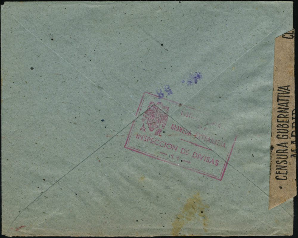2586 | 16 € | II. WELTKRIEG (1939 - 1945) : SPANIEN 1941 (19.12.) AFS Francotyp: MADRID/1/BANCO HISPANO AMERICA *075 C. ,rs. Zensur-Streifen "CENSURA GUBERNATIVA/ MADRID" + roter Ra: ..INSPECCION DE DEVISAS/-11- , Devisenzensur-Ausl.-Bf. in die Schweiz | ![]() ![]() | |
