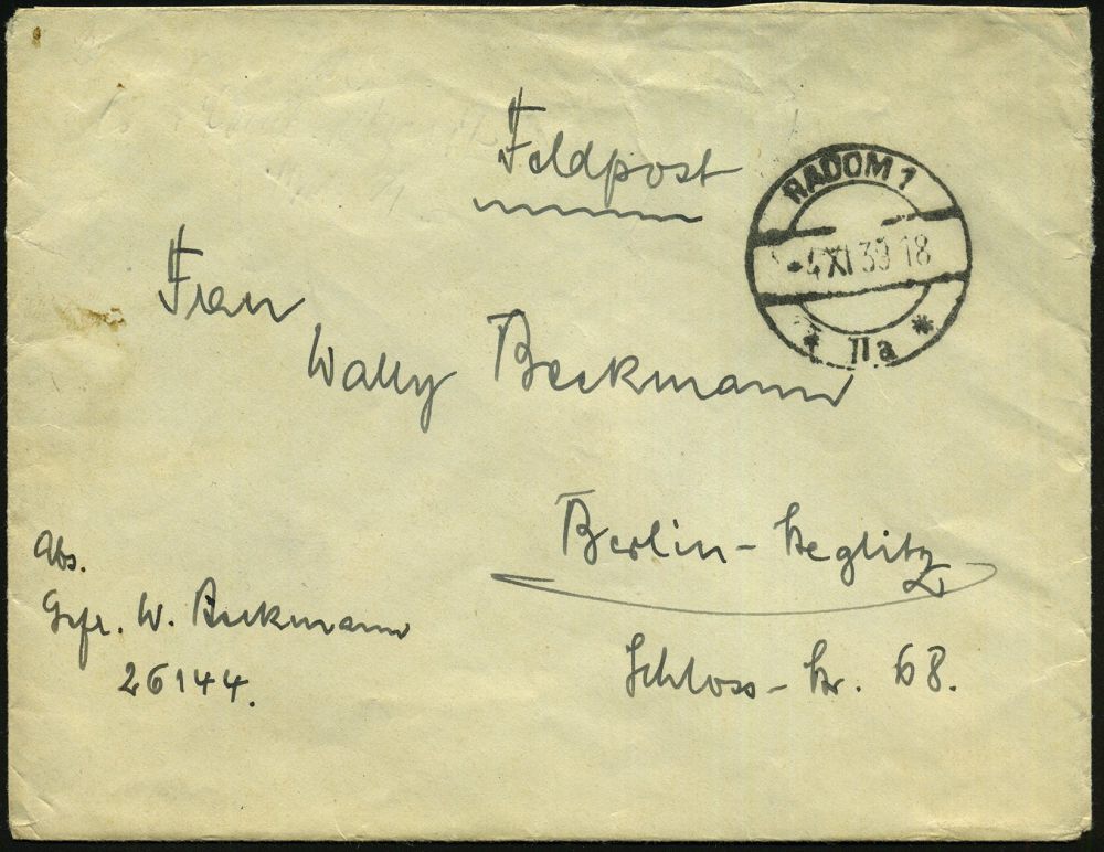 2092 | 25 € | II. WELTKRIEG (1939 - 1945) : BERLIN O 17/ b/ Int.Messe/ Leipzig/ MM/ 27.VIII.-31.VIII. 1939 (28.8.) MWSt auf 2x 1 Pf. u. 6 Pf. Hindenbg., ziviler Feldpost-Bf. aus Zeit der Feldpost-Sperre + Inhalt (ohne Abs.) Text: "..wir werden heute Sonntag höchstwahrscheinlich weiterfahren.. es sieht ja augenblicklich sehr schlecht aus.." n. Berlin-Neukölln = Mobilmachung zum Angriff auf Polen, auf 1. Sept. verschoben! (Mi.2x 512, 516) | ![]() ![]() | |