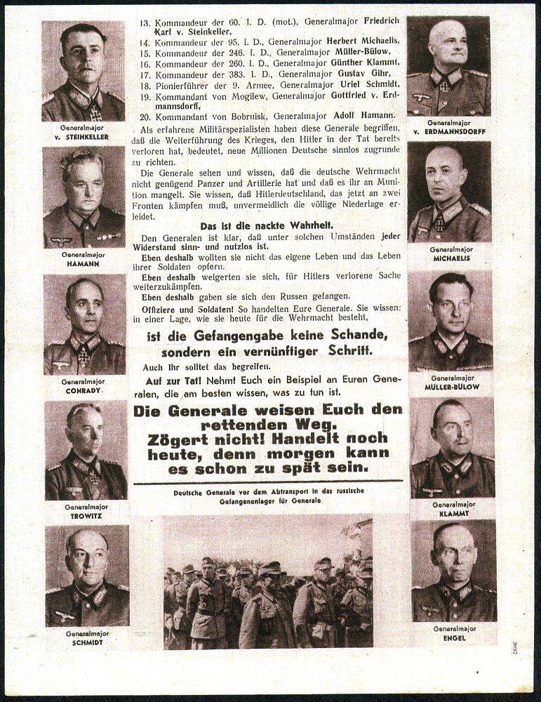 2594 | 30 € | II. WELTKRIEG (1939 - 1945) : UdSSR / DEUTSCHES REICH 1944 sowjet. Propaganda-Flugblatt No.3097: 20 deutsche Generale haben sich den Russen gefangengegeben (nach der Vernichtung der Heeresgruppe Mitte) mit Portraits der Generäle (1x gefaltet) gute Erhaltung! (Format ca. 22,2 x 29 cm) | ![]() ![]() | |
