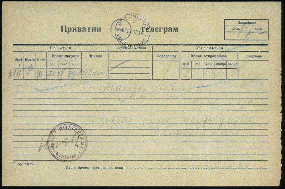 2520 | 40 € | II. WELTKRIEG (1939 - 1945) : DT.BES.SERBIEN 1942 (22.IX.) zweisprachiger 1K: VEL-KIKINDA + viol. Polizei-Zensur-2K: POLIZEIAMT/ Gross-Kikinda (= Wolter u. Riemer unbekannt !) auf serbischem Telegramm-Formular (serb. Formular) seltener Beleg! | ![]() | |