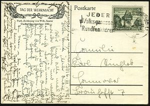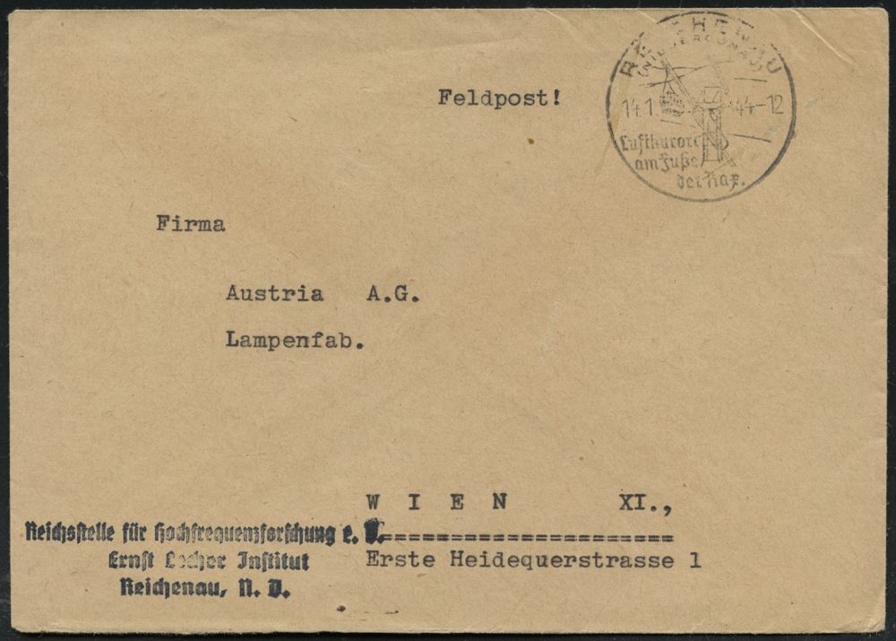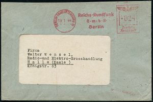 2129 | 20 € | II. WELTKRIEG (1939 - 1945) : BERLIN-CHARLOTTENBURG 9/ Reichs-Rundfunk/ GmbH 1944 (19.1.) AFS Francotyp "Reichsadler" , klar gest., relativ später Beleg (rs. kl. Klappenfehler) Fern-Doppelbf., hier verbreiteten Hitler, Goebbels u.a. ihre (Kriegs)-Propaganda (Dü.E-5DG) | ![]() | |
