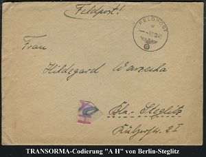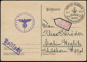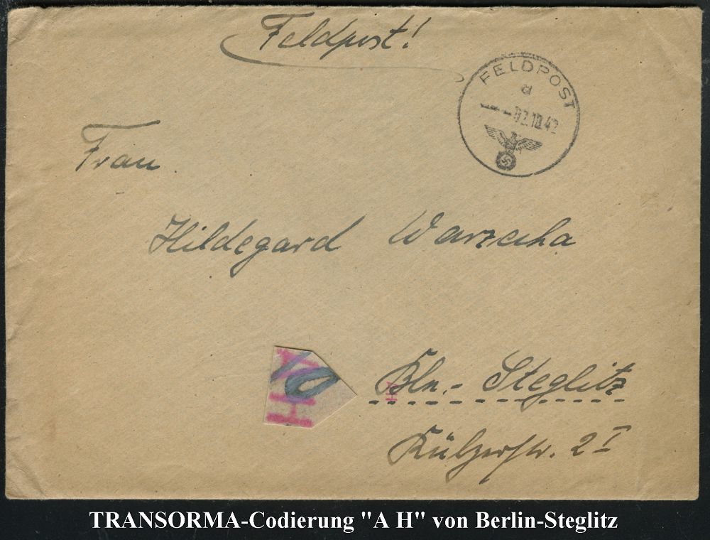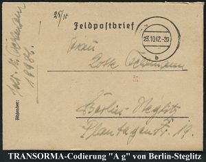 2117 | 25 € | II. WELTKRIEG (1939 - 1945) : BERLIN SW 11/ al 1942 (12.10.) 2K-Steg + viol. 1K-HdN: Oberkommando der Wehrmacht/ Kriegsfernmeldeabteilung + rs. Abs.-4L: Oberkommando der Wehrmacht/ Kriegsfernmelde Abt./..Bendlerstr. 11/13 = Kriegsfunk-Zentrale, der deutsche ENIGMA-Code wurde von M. Rejansk u. Alan Turing in Blechley-Park unter dem Decknamen "Ultra"in Großbritannien 1940 entschlüsselt! (ohne Wissen der Wehrmacht), klar gest. Feldpost-Orts-Bf. | ![]() ![]() | |
