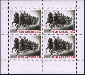 2580 | 20 € | II. WELTKRIEG (1939 - 1945) : SCHWEIZ 1939 gez. Soldatenmke.: FELD ART. RGT. 6, gez. Kleinbogen (4): Bespanntes Geschütz im Galopp ,postfr., (Su.44.3) | ![]() | |