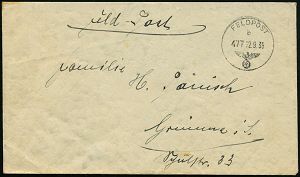2577 | 15 € | II. WELTKRIEG (1939 - 1945) : SCHWEIZ 1940 20 C. Tessin, EF + viol.Feldpost- 2K: DRAGONER SCHW/9/Feldpost + viol.1L: Dragoner-Schwadron 9, Inl.-Feldpost-Bf. (= Grenzbesetzung, Mobilmachung) | ![]() | |