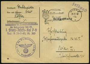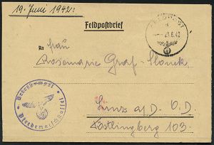 2086 | 18 € | II. WELTKRIEG (1939 - 1945) : ABSDORF/ a 1942 (13.6.) aptierte, ehem. österr. 1K-Brücke auf Feldpost-Bf. an Fp.Nr. 17 038 = Rgmts-Stab SS-Div. "Nordland" mit Inhalt! (2 Briefbögen !) | ![]() ![]() | |