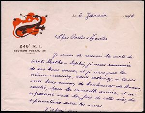 2542 | 18 € | II. WELTKRIEG (1939 - 1945) : FRANKREICH 1940 (18.2.) Feldpost-1K: POSTE AUX ARMEES/** + Pergamin-Zensurstreifen: Contrôle Postal Militaire + Zensur-Doppel-Oval: OVERT/WF 392.. = Lyon (Wo.WF 392) = Sonder-Kommission für Ausl.-Verkehr + Inhalt: Zier-Briefbogen 246. Inf. Regt. (Drache), Ausl.-Zensur-Feldpost-Bf. der "Sitzkrieg"-Periode! (n. Basel) | ![]() ![]() | |
