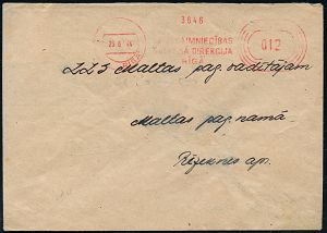 2591 | 18 € | II. WELTKRIEG (1939 - 1945) : UdSSR 1940 (10.1.) AFS Francotyp: MOSKWA/* = Maschinoimport + sowjet. Zensur-Roll-St: 6 Wellen/ sowjet. Staats-Wappen rs. (Wo.5 ?) + OKW-Zensur-Streifen "Geprüft" (= Berlin, Rie. B-51, Bf. schwache Falte), seltener Ausl.-Doppel-Zensur-Bf. aus der Zeit Hitler-Stalin-Paktes ! (n. Chemnitz) | ![]() ![]() | |