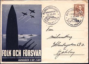 2568 | 18 € | II. WELTKRIEG (1939 - 1945) : SCHWEDEN 1940 (11.10.) 1K-Mobil-PA: BILPOSTKONTORET/STOCKHOLM/FOLK OCH FÖRSVAR (= Mobiles PA.) dekorativer Sonderumschlag: Miliz-Ausstellung Stockholm Militärmuseum inkl. Luftabwehr, | ![]() | |