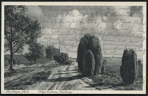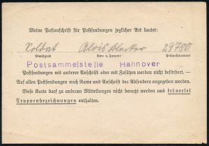 2163 | 14 € | II. WELTKRIEG (1939 - 1945) : FALLINGBOSTEL (LAGER)/ c 1940 (11.1.) 2K-Steg = Hauspostamt Truppenübungsplatz (Mi.15 c) + viol. 1K-HdN: Landesschütz.(en) Btl. XV-XI/4. Kp. , klar gest. Feldpost-Ak. (Lüneburger Heide) n. Hagenburg, siehe auch Sektion: Wehrmachts-Truppenübungsplätze! | ![]() ![]() | |