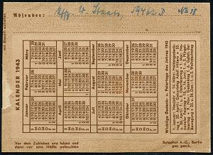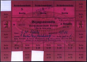 2121 | 28 € | II. WELTKRIEG (1939 - 1945) : Berlin 1943 rotlila "Bezugsausweis" Reichshauptstadt mit Abb.: Olympia-Stadion (3 Abschnitte abgetrennt) gefaltet, seltenes Dokument! | ![]() | |
