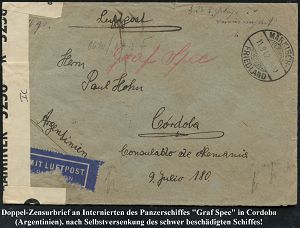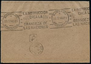 2533 | 50 € | II. WELTKRIEG (1939 - 1945) : ARGENTINIEN 1941 (10.12.) 1K: BUENOS AIRES, viol. Luftpost-1L: "VIA PANAGRA" + roter 2L: RETURN TO SENDER/ SERVICE SUSPENDED (Bf. oben kl. Riß) = Kriegseintritt der U.S.A., Luftverbindung nach Europa eingestellt!, brit. Zensurzettel: EXAMINED BY/ 4353, seltener Übersee-Flp.-Zensur-Retour-Bf. n. Holland (= Verbindung unterbrochen!) | ![]() ![]() | |