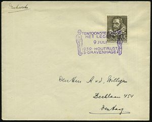 2558 | 16 € | II. WELTKRIEG (1939 - 1945) : NIEDERLANDE 1939 (9.7.) viol. SSt.: ´S-GRAVENHAGE/HOUTRUST/TENTOONSTELLING/HET LEGER = Armee-Ausstellung (= 2 Soldaten mit Gewehr u. Stahlhelm) klar gest. Inl.-Bf. kurz vor Kriegsbeginn | ![]() | |