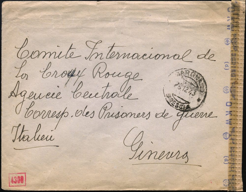 2769 | 20 € | KGF-POST II. WELTKRIEG (ab 1939) : ITALIEN (DT.BESETZUNG) 1943 (25.12.) 1K-Brücke: GARGNANO/BRESCIA + blauer OKW-Bd.Zensur.St "d" = München (Rie.D-21) + neutraler Riffelstreifen (Rie.D-61) Ausl.-Zensur-Bf. an I.R.K., Genf, nach Abfall Italiens, Fall "Achse", Internierung italienischer Soldaten ! | ![]() | |