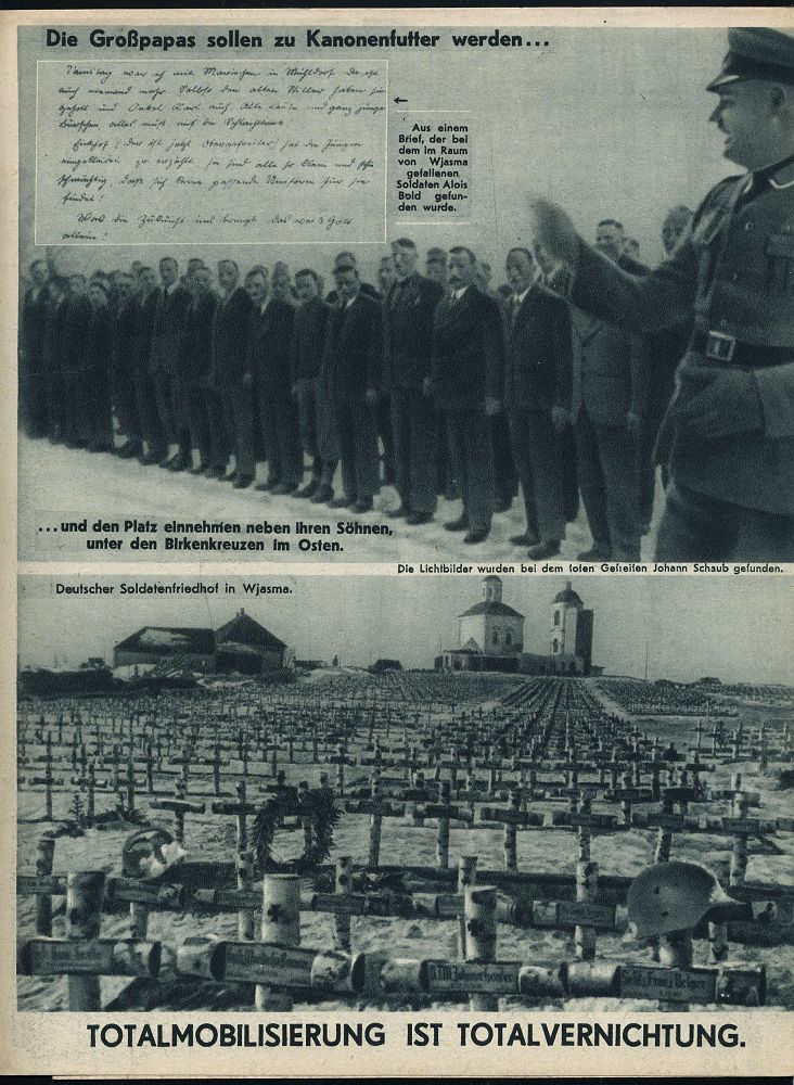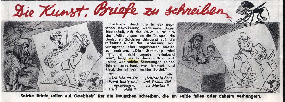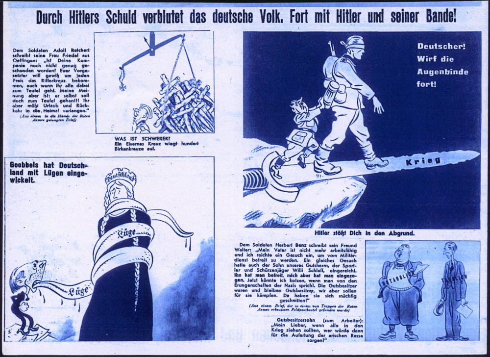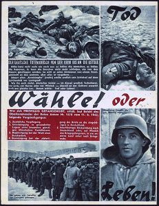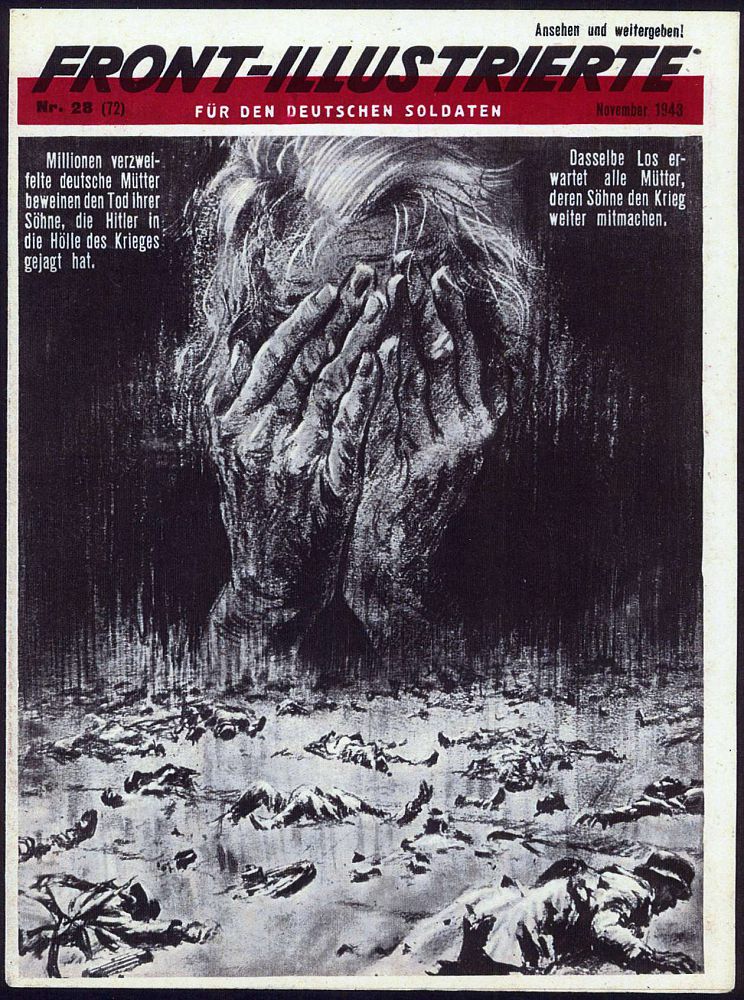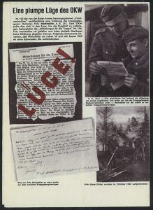 2797 | 35 € | KGF-POST II. WELTKRIEG (ab 1939) : UdSSR / DEUTSCHES REICH 1943 (Nov.) sowjet., deutschsprachige Propaganda-Flugblatt-Zeitung: FRONT-ILLUSTRIERTE Nr.28: Millionen verzweifelte deutsche Mütter.. , 4 Seiten. rs. Anti-Hitler-Fotomontage (Format 21,5 x 28,5 cm) sehr gute Erhaltung!, sehr selten! | ![]() ![]() | |