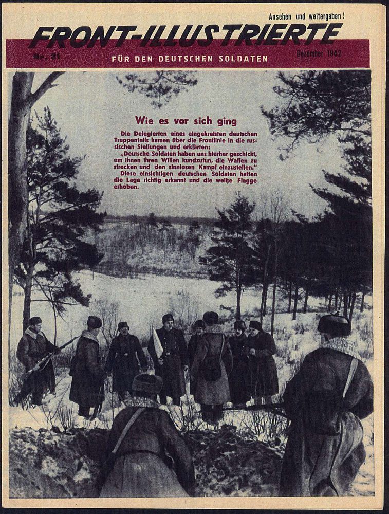 2785 | 35 € | KGF-POST II. WELTKRIEG (ab 1939) : UdSSR / DEUTSCHES REICH 1942 (Okt.) sowjet., deutschsprachige Propaganda-Flugblatt-Zeitung: FRONT-ILLUSTRIERTE Nr.26 ,4 Seiten, Titel: deutsche Soldaten ergeben sich bei Stalingrad (Großformat 21,5 x 30,5 cm, Mittelfalte), sehr selten! | ![]() ![]() | |