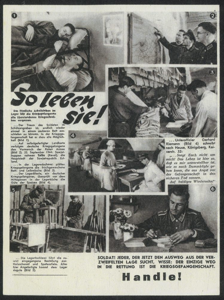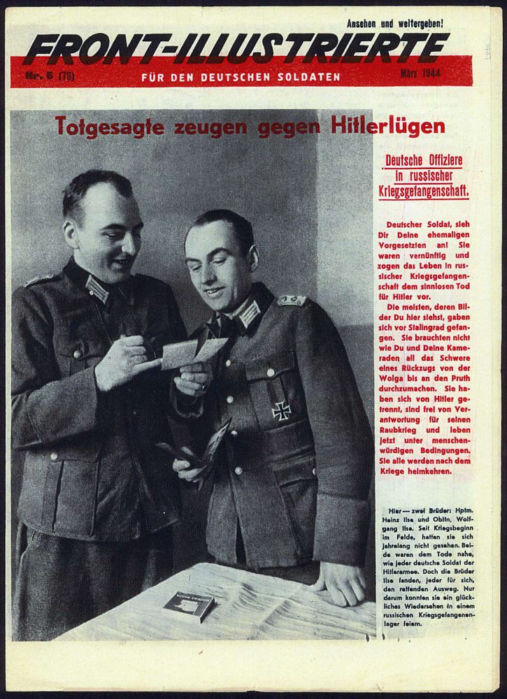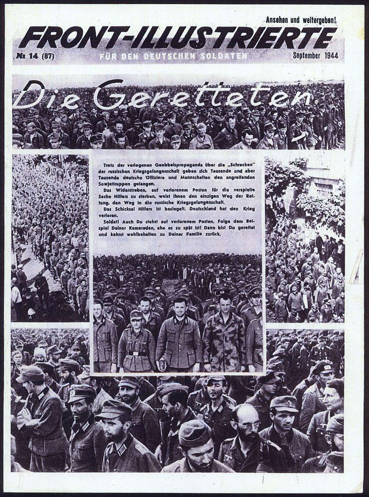 2803 | 35 € | KGF-POST II. WELTKRIEG (ab 1939) : UdSSR / DEUTSCHES REICH 1944 (Sept.) sowjet., deutschsprachige Propaganda-Flugblatt-Zeitung: FRONT-ILLUSTRIERTE Nr.14 "Die Geretteten" (deutsche Kriegsgefangene) 4 Seiten (Format 21,5 x 28,5 cm; rechts kl.Rißchen) sonst gute Erhaltung!, sehr selten! | ![]() ![]() ![]() | |