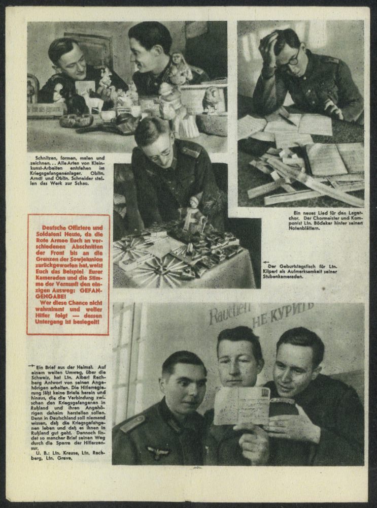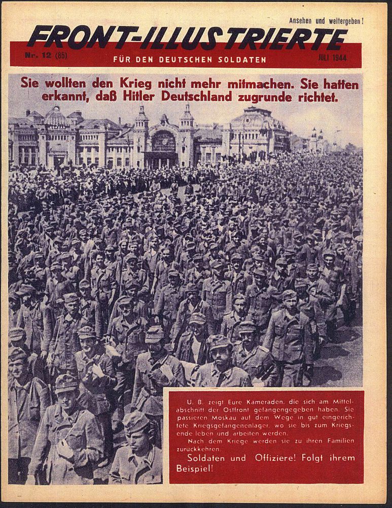 2802 | 35 € | KGF-POST II. WELTKRIEG (ab 1939) : UdSSR / DEUTSCHES REICH 1944 (Juli) sowjet. Propaganda-Flugblatt-Zeitung: FRONT-ILLUSTRIERTE FÜR DEN DEUTSCHEN Soldaten Nr. 12 (85) , 8 Seiten, Titel u. innen: ein Heer von deutschen Gefangenen u. das "angenehme" Leben als Gefangener etc. (Format 22,5 x 29 cm) druckfrische Erhaltung!, sehr selten! | ![]() ![]() | |