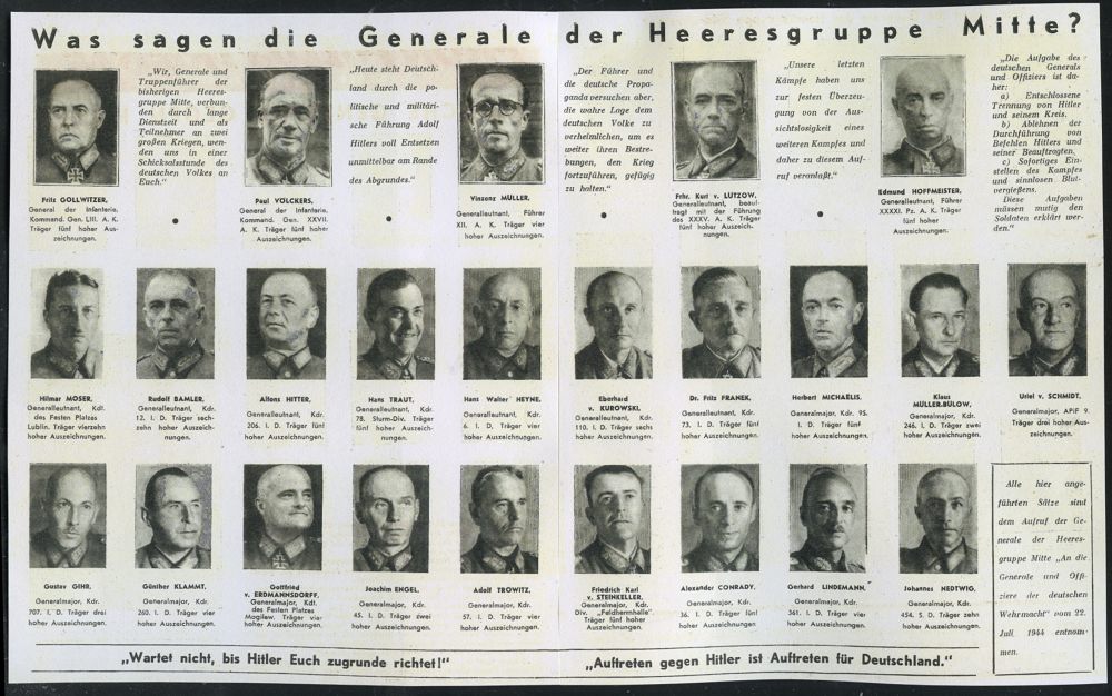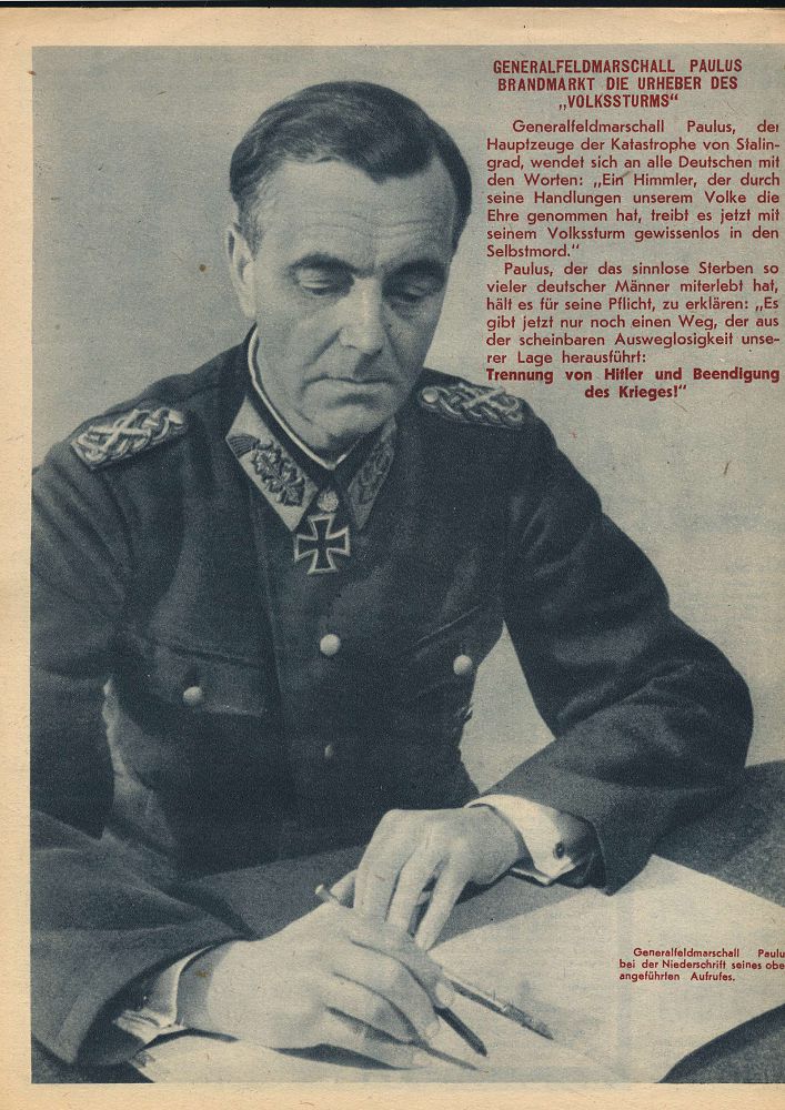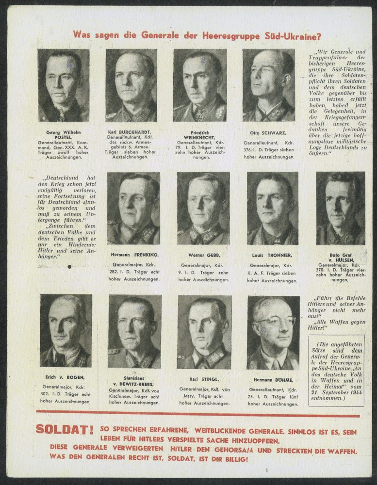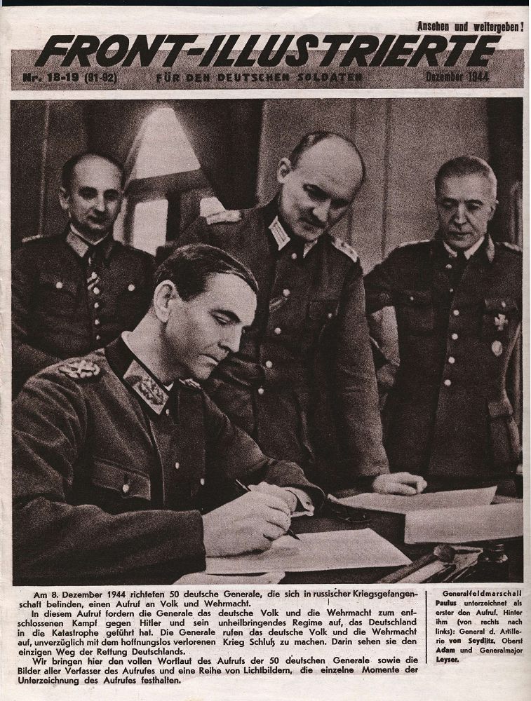 2804 | 35 € | KGF-POST II. WELTKRIEG (ab 1939) : UdSSR / DEUTSCHES REICH 1944 (Sept.) sowjet., deutschsprachige Propaganda-Flugblatt-Zeitung: FRONT-ILLUSTRIERTE Nr.16 "DEUTSCHE GENERALE GEGEN HITLER" (Portrait-Fotos von Gen.-Felmarschall Paulus u. 34 weitere Generäle) 4 Seiten (Format 23 x 30 cm) gute Erhaltung!, sehr selten! | ![]() ![]() ![]() | |