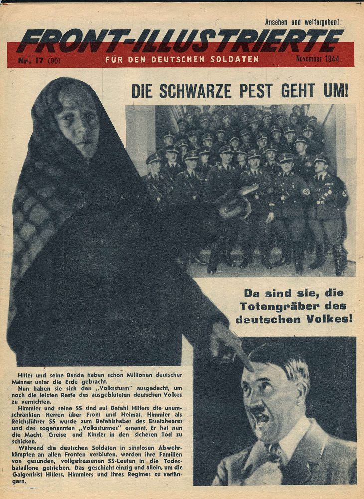 2805 | 35 € | KGF-POST II. WELTKRIEG (ab 1939) : UdSSR / DEUTSCHES REICH 1944 (Nov.) sowjt., deutschsprachige Propaganda-Flugblatt-Zeitung: FRONT-ILLUSTRIERTE Nr.17: "DIE SCHARZE PEST GEHT UM" , 4 Seiten: SS-Führer Himmler, schwarze Witwe zeigt auf Hitler, innen Schicksal einer dt. Familie, rs. Gen.-Feldmarschall Paulus gegen "Volkssturm" (Format 22,5 x 30 cm) sehr gute Erhaltung!, sehr selten! | ![]() ![]() | |