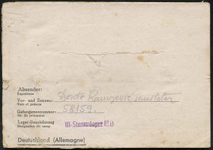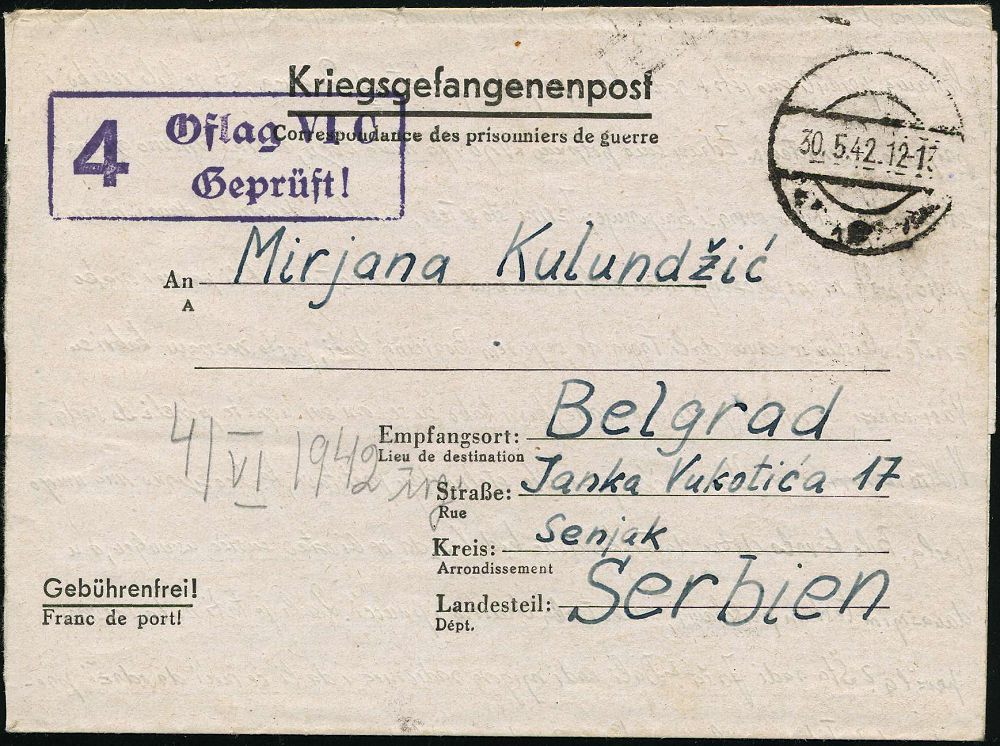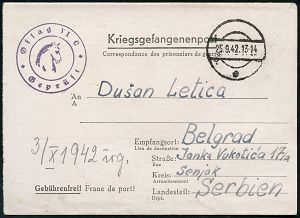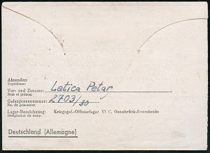 2746 | 25 € | KGF-POST II. WELTKRIEG (ab 1939) : Osnabrück 1942 (25.9.) stumme 1K-Brücke = Tarnstempel Osnabrück-Eversheide + viol. Zensur-2K-HdN: Oflag VI C/Geprüft = Pferdekopf !, klar gest. Kgf-Falt-Bf. eines serbischen Kgf. mit Inhalt n. Belgrad | ![]() ![]() | |