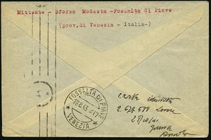 2770 | 16 € | KGF-POST II. WELTKRIEG (ab 1939) : ITALIEN 1943 (18.8.) 1K: FOSSALTA DI PIAVE/VENEZIA + schw. OKW-Bd.-Zensur-St: A / d = München (Rie.D-40, + 150 Pkte.) Ausl.-Zensur-Bf. aus der Zeit Italiens Hinwendung zu den Alliierten, Fall "Achse"!, an I.R.K., Genf, vergl. Los Nr. 2769 | ![]() ![]() | |