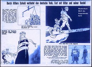 2794 | 35 € | KGF-POST II. WELTKRIEG (ab 1939) : UdSSR / DEUTSCHES REICH 1943 (Juni) sowjet., deutschsprachige Propaganda-Flugblatt-Zeitung: FRONT-ILLUSTRIERTE Nr.14 , 4 Seiten: Hitlers Bilanz 1941-43, Rote Armee, rs. Karikatur Hitler mit brennendem Hintern u. blutigen Händen (Format 21,5 x 28,5) druckfrische Erhaltung! | ![]() ![]() | |