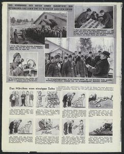2782 | 30 € | KGF-POST II. WELTKRIEG (ab 1939) : UdSSR / DEUTSCHES REICH 1942 (April) sowjet. Propaganda-Flugblatt-Zeitung: FRONT-ILLUSTRIERTE FÜR DEN DEUTSCHEN SOLDATEN Nr.9 Großformat (4 Seiten, 23 x 28 cm, links Randspuren) "Kriegsfangene deutsche Soldaten.." , rs. Karikatur zur Urlaubssperre etc., sehr selten! | ![]() ![]() | |