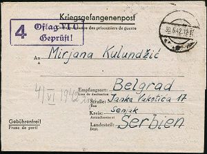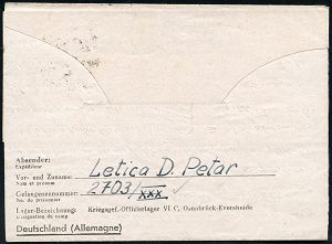 2745 | 16 € | KGF-POST II. WELTKRIEG (ab 1939) : Osnabrück 1942 (30.5.) stumme 1K-Brücke: e = Tarnstempel Osnabrück + viol. Ra.2: 5/Oflag VI C/Geprüft (Wo.19 b) dt.-französ. Kgf.-Falt-Vordr.-Zensur-Bf.: Oflag VI C, Osnabrück-Eversheide mit Inhalt n. Belgrad | ![]() ![]() | |
