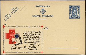 2761 | 23 € | KGF-POST II. WELTKRIEG (ab 1939) : BELGIEN 1941 50 C. Reklame-P blau: ..Loterij.."Het Pakket voor den Gevangene".. (RK-Paket/Kgf) = RK-Lotterie für belgische Kriegsgefangene!, fläm.Text, ungebr., selten! (Mi.P 210 A II / 520) | ![]() | |