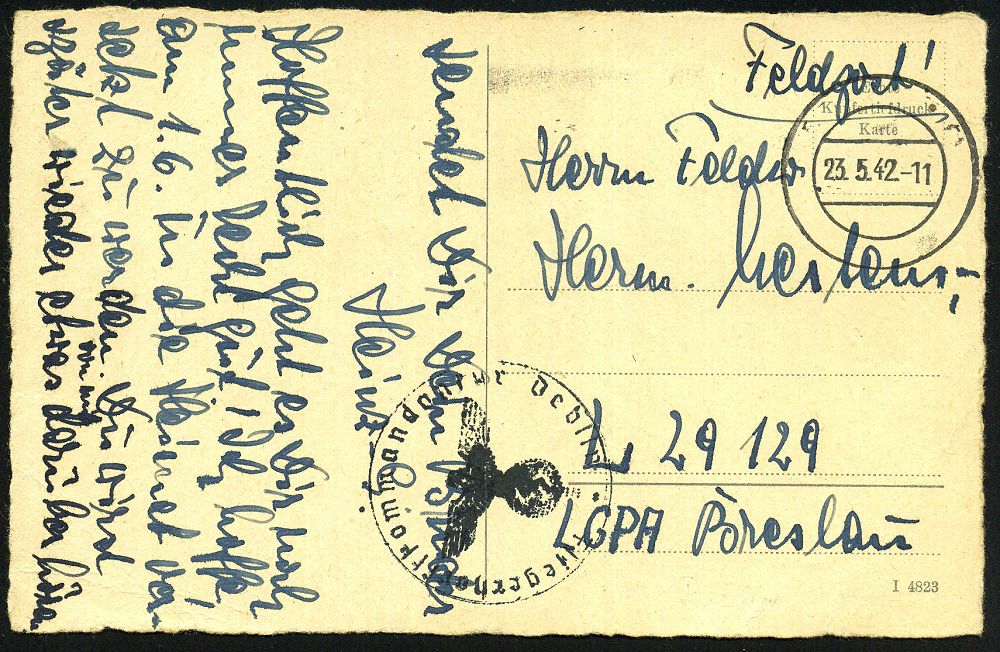 2900 | 16 € | FLIEGERHORST / MILITÄRFLUGHAFEN (1933-45) : GENERALGOUVERNEMENT 1942 (23.5.) stummer 2K-Steg = Tarnstempel Deblin + schw. 1K-HdN: Fliegerhorstkommandantur Deblin , klar gest. Feldpost-Ak. (Pfingsten) an Feldpost Nr. L 29 129 = Fliegerhorst-Kdtr. (E) 34/XI | ![]() | |