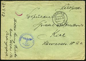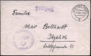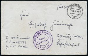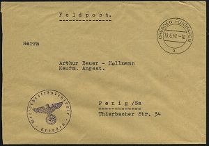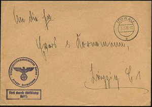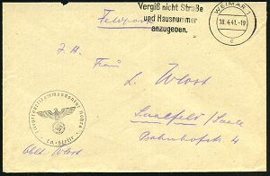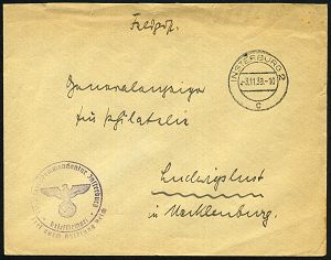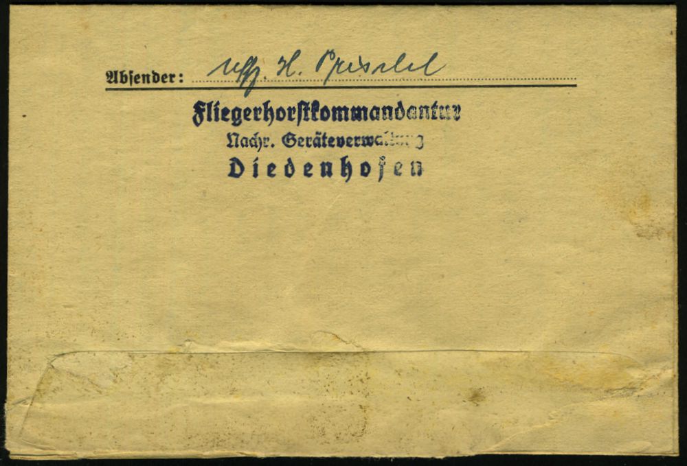 2895 | 15 € | FLIEGERHORST / MILITÄRFLUGHAFEN (1933-45) : UETERSEN (HOLST)/ c 1941 (8.10.) 2K-Steg + viol. 1K-HdN: Fliegerhorstkommandantur Uetersen/1 + rs. viol. Abs.-1L: Fliegerhorst-kommandantur/ Uetersen, Feldpost-Bf. (2x kl. Riß) n. Itzehoe | ![]() | |