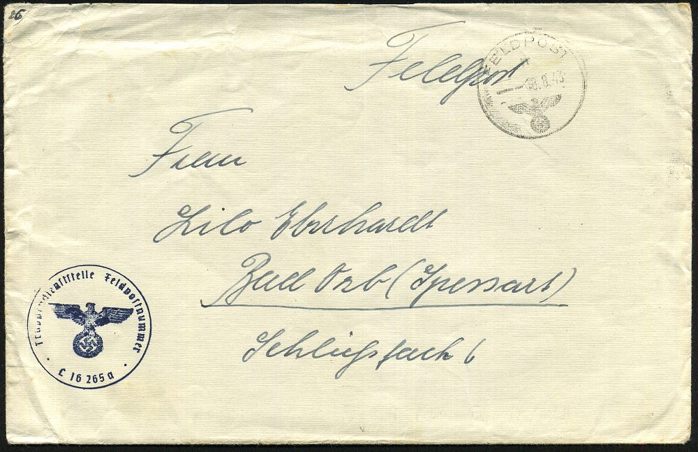2906 | 15 € | FLIEGERHORST / MILITÄRFLUGHAFEN (1933-45) : DEUTSCHES REICH 1944 (10.10.) 1K: FELDPOST/k/--- + kleiner 1K-HdN: Feldpost Nr. L 53465/5 = Fliegerhorst Kdtr. (E) 211/XII = LgPa Paris wurde am 22.11. gestrichen, wg. alliierter Invasion u. Vormarsch!, rs. hs. Abs., klar ges. Feldpost-Bf. (kl. Öffnungs-Mäng.) n. Geesthacht, selten! | ![]() | |