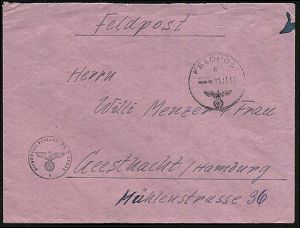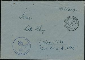 2870 | 15 € | FLIEGERHORST / MILITÄRFLUGHAFEN (1933-45) : BARTH 3/ b 1943 (8.3.) 2K-Steg + viol. 1K-HdN: Fliegerhorstkommandantur Barth + rs. hs. Abs., klar gest. Feldpost-Bf. (kl. Rißchen) + umfangreicher Inhalt n. Hamburg | ![]() ![]() | |