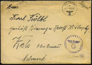 2880 | 23 € | FLIEGERHORST / MILITÄRFLUGHAFEN (1933-45) : INSTERBURG 2/ c 1939/40 2K-Steg + viol. 1K-HdN: Fliegerhorstkommandantur Jnsterburg/Frei durch Ablös. Reich bzw. viol. 1K-HdN Kommando des Flughafenbereichs Jnsterburg, 2 Feldpost-Briefe (1x ungestempelt, 1x Randrißchen) 1x mit Inhalt, 2 Belege | ![]() ![]() | |