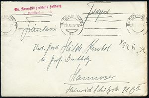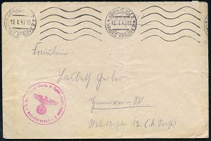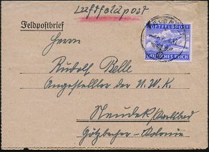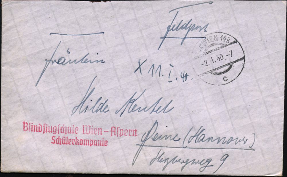 2957 | 15 € | II. WELTKRIEG: LUFTWAFFEN-EINHEITEN / LUFTFELDPOST 1939-45 : 21/c WIEN 148/ c 1940 (2.1.) ehem. österr. 1K-Brücke + roter 2L: Blindflugschule Wien-Aspern/Schülerkompanie + rs. hs. Abs., Feldpost-Bf. + Inhalt n. Peine, Aspern ist das älteste Flugfeld Österreichs! | ![]() | |