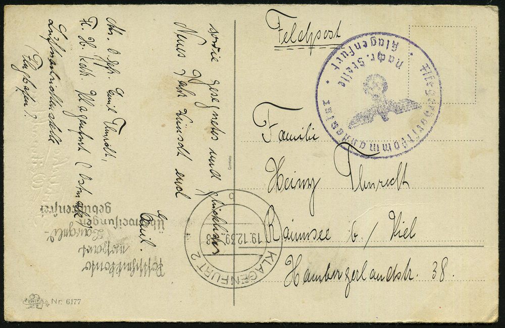 2932 | 16 € | II. WELTKRIEG: LUFTWAFFEN-EINHEITEN / LUFTFELDPOST 1939-45 : KLAGENFURT 2/ b/ Postscheckkonto/ spart/ Bargeld.. 1939 (19.12.) seltener Serien-MWSt, teils Sütterlin + viol. 1K-HdN.: Fliegerhorstkommandantur/Nachr. Stelle.. , klar gest. Feldpost-Weihnachts-Ak. n. Kiel (Bo.S 344 B, nur in 6 Orten der "Ostmark" verwendet!) | ![]() | |