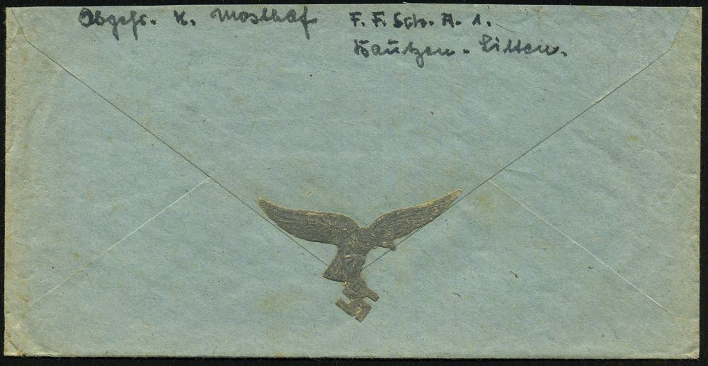 2945 | 18 € | II. WELTKRIEG: LUFTWAFFEN-EINHEITEN / LUFTFELDPOST 1939-45 : OSCHATZ 3/ a 1942/43 4x 2K-Steg + roter 1K-HdN: Flugzeugführerschule A/B 61/Schülerkompanie bzw. grüner 1K-HdN: Flug-zeugführerschule A/B 61 bzw. viol. 1K-HdN: Flugzeugführerschule A/B 61 + hs. Abs., dabei: "..U.A. Lehrgang" bzw. "..Flieger-horst, Offz. Bew. Lehrg. 43-I.." etc., 3 Feldpost-Briefe (1x unsichtbarer Riß) 2x mit Inhalt, 3 Belege | ![]() ![]() ![]() ![]() | |